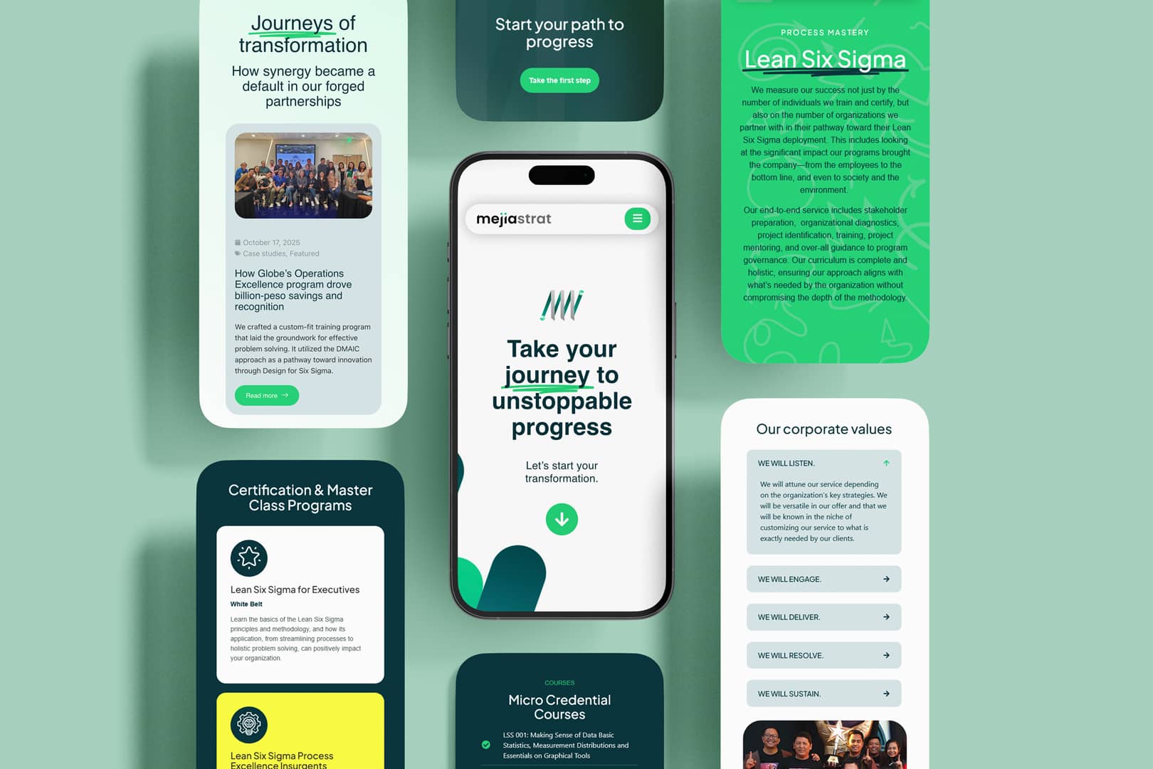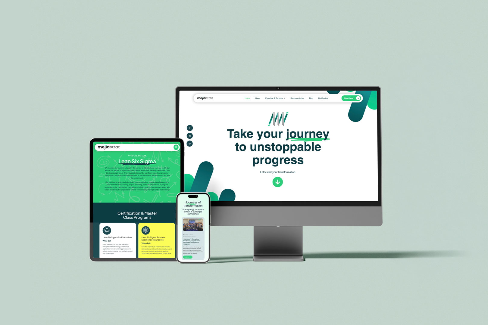 A streamlined site showcasing the company’s hands-on, client-focused guidance toward a journey of continuous improvement—boosting brand perception and service clarity, and providing a validation tool for certified participants.